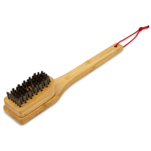 Grillbørsten er fremstillet af bambus, og det vinklede børstehoved sikrer, at du nemt kan fjerne fedt og snavs uden at komme for tæt på varmen fra grillen.