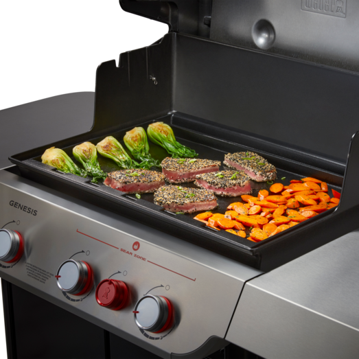 Grill lige det, du har lyst til, på den grill, du har stående derhjemme med Genesis-stegepladen i fuld størrelse. Stegepladen forvandler grillfladen til én stor stegeplade på få sekunder og passer perfekt til din Genesis 300-gasgrill. Stegepladen er fremstillet af porcelænsemaljeret støbejern og udnytter din grills stærke brændere til at levere jævn varme fra kant til kant. Fra pandekager og æg til fisk og skaldyr samt grøntsager – du har fuld kontrol og kan servere lækre, velsmagende resultater – fra første til sidste servering. Og stegepladens fedtopsamlingssystem er skabt lige netop til din grill, så du undgår at spilde og effektivt får opsamlet fedtet. Få det bedste fra både stegeplade- og grilluniverset uden at føje endnu en grill til flåden derhjemme. Fyr op under stegepladen.